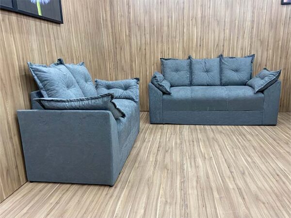 O Sofá 3 e 2 lugares Modelo Paris é um produto de extrema qualidade e conforto. Além disso, vai deixar sua sala mais bonita e aconchegante. Acima de tudo, muito resistente, produzido com madeira de eucalipto de reflorestamento, ecologicamente correto.