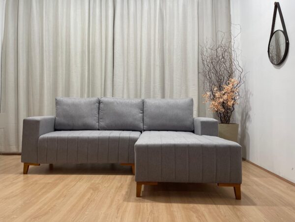 O revestimento é em tecido Linho, deixando a superfície do sofá muito mais macia.